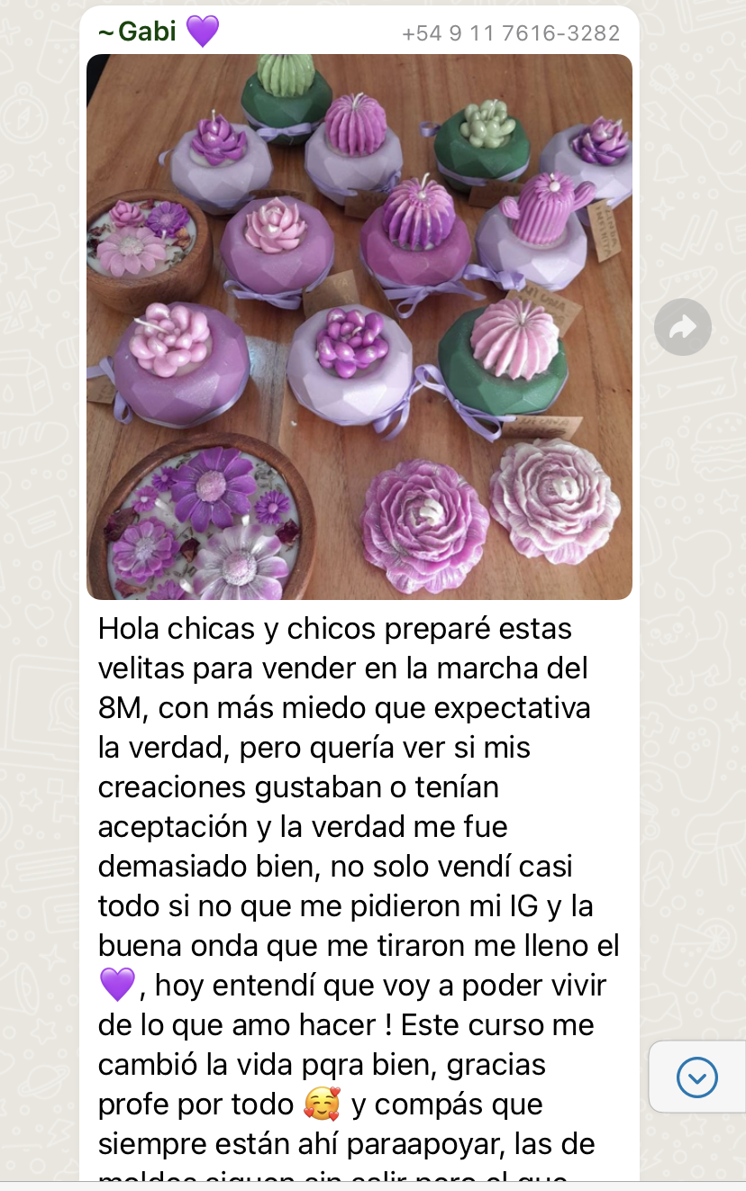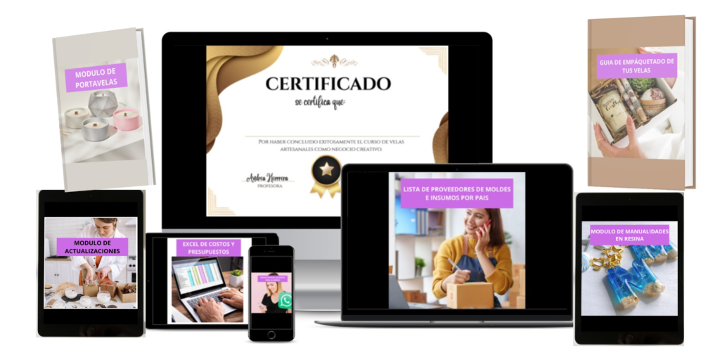 Sumate al curso completo y comenzá a crear tus propias velas paso a paso, desde casa y con acompañamiento.